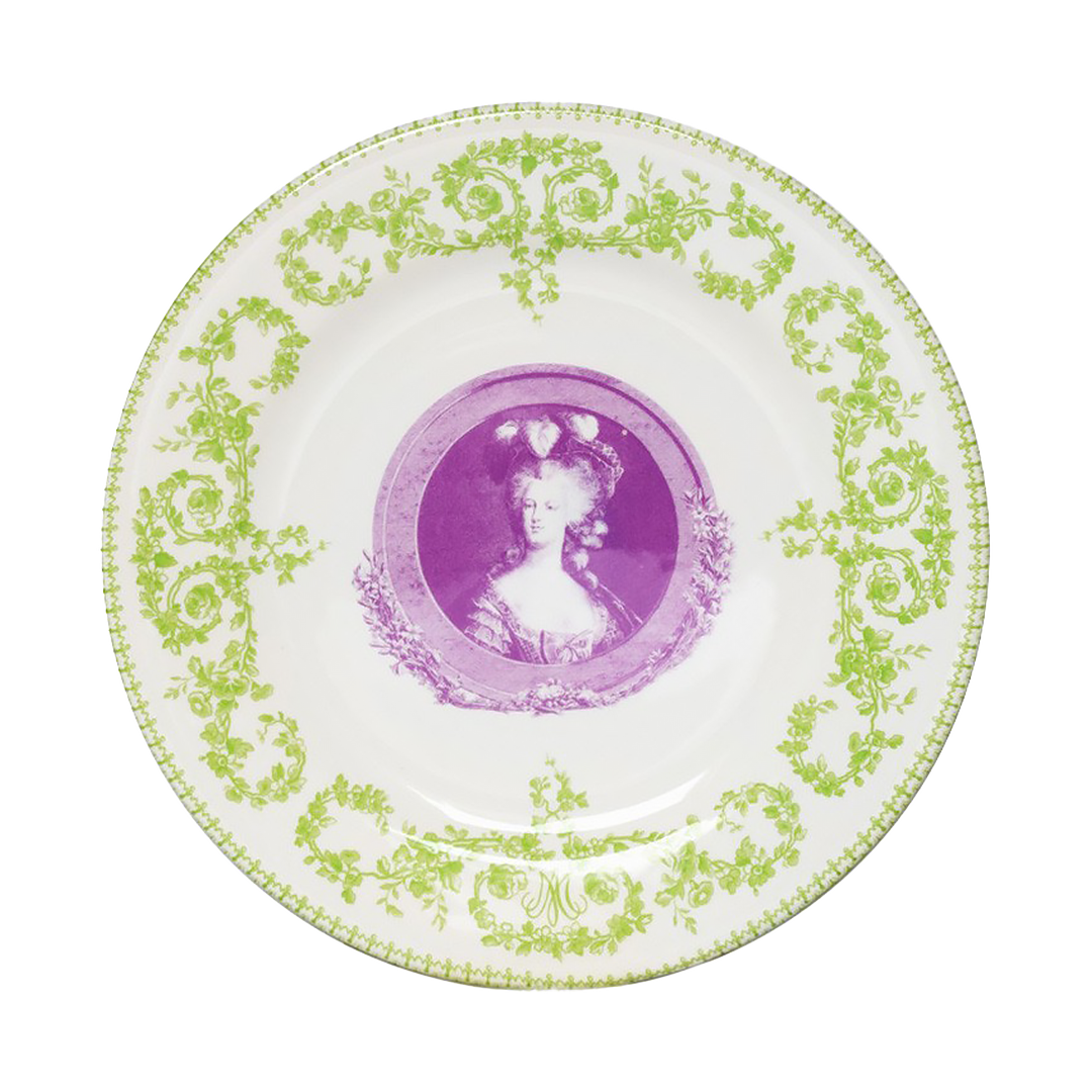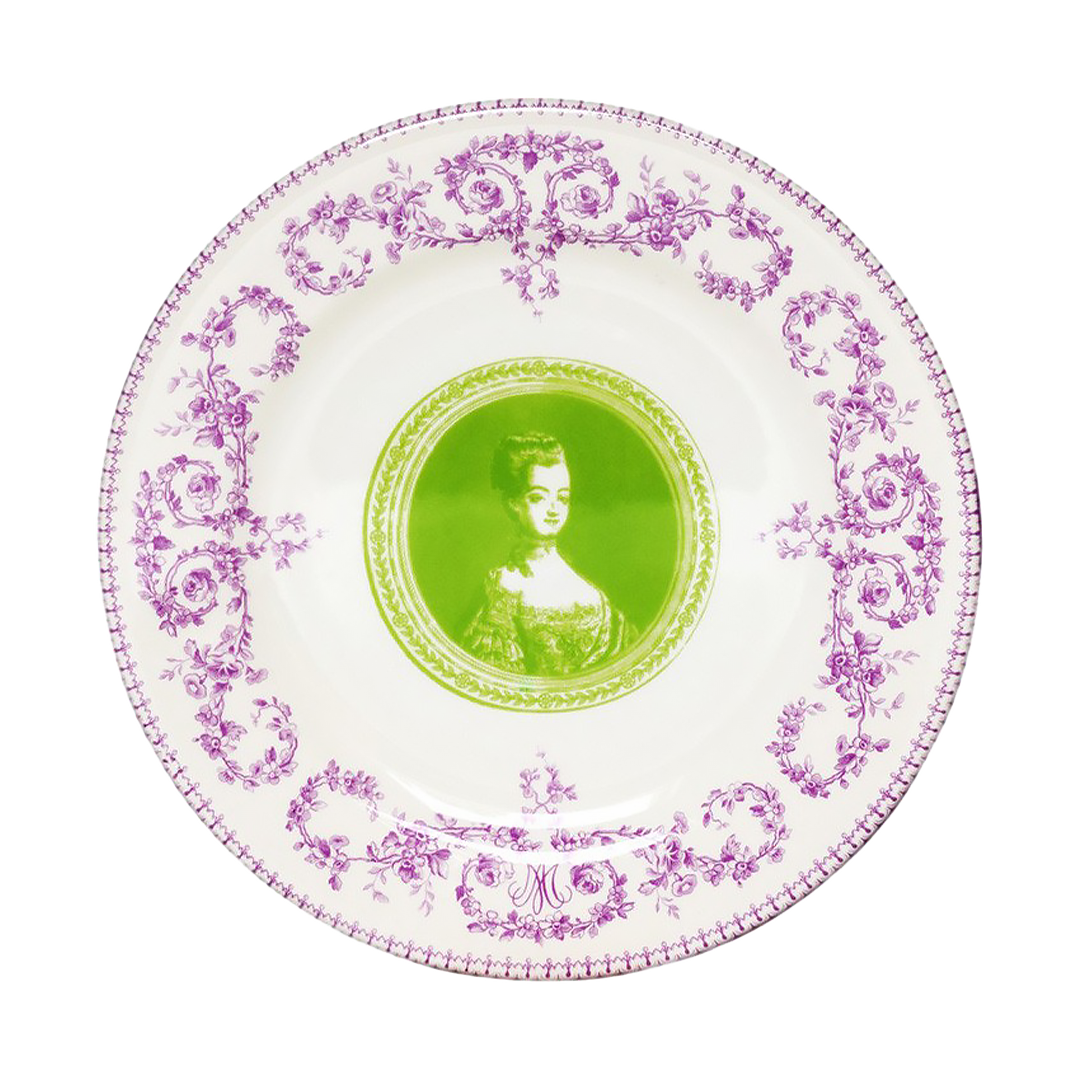 The “Marie-Antoinette” serie is part of the collection designed exclusively by Gien for the palace of Versailles. This tangy colored series is a dashing interpretation of archive prints illustrating the Queen of France at different stages of her life, from being the nation’s cherished young wife of the Dauphin, to the radiant and then unhappy queen.