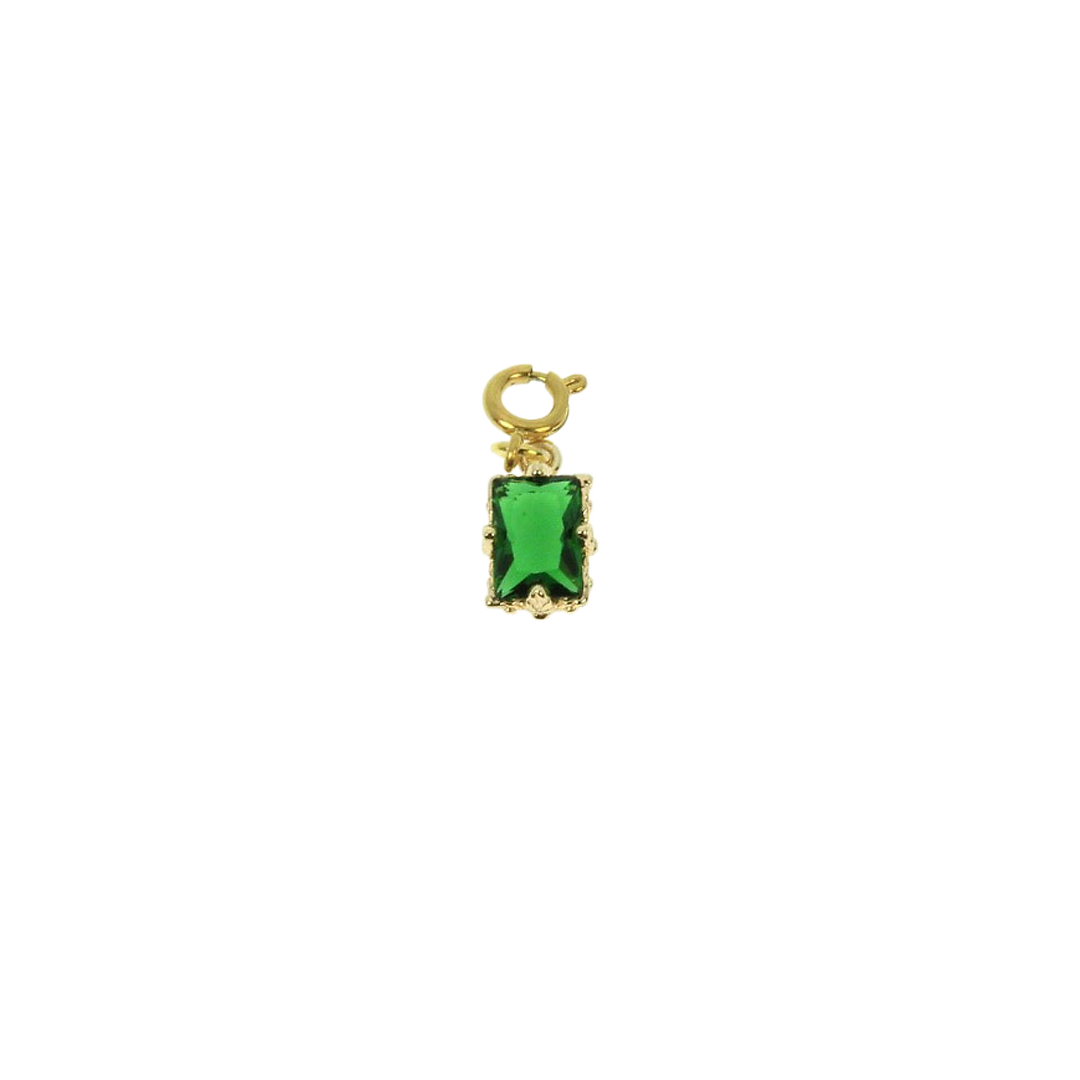 - Green rhinestone: Glass, gold-plated brass – 0.5 x 0.8 cm