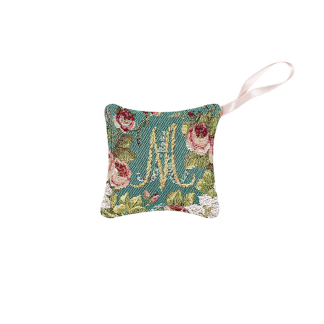 Lavender-scented mini cushion, woven on a traditional Jacquard loom composed of more than 14,000 threads.